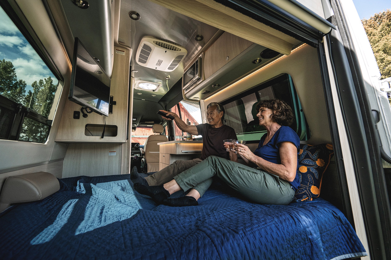 The folks at Airstream believe that every excursion should feel comfortable and safe. That’s why the Interstate 19GT is equipped with home essentials, like a super-efficient heating and cooling system, as well as active driver-assist features like blind spot monitoring and a lane-keeping system. Built on the Mercedes-Benz chassis, best-in-class luxury always comes standard. Noteworthy details found with the Interstate 19GT include: